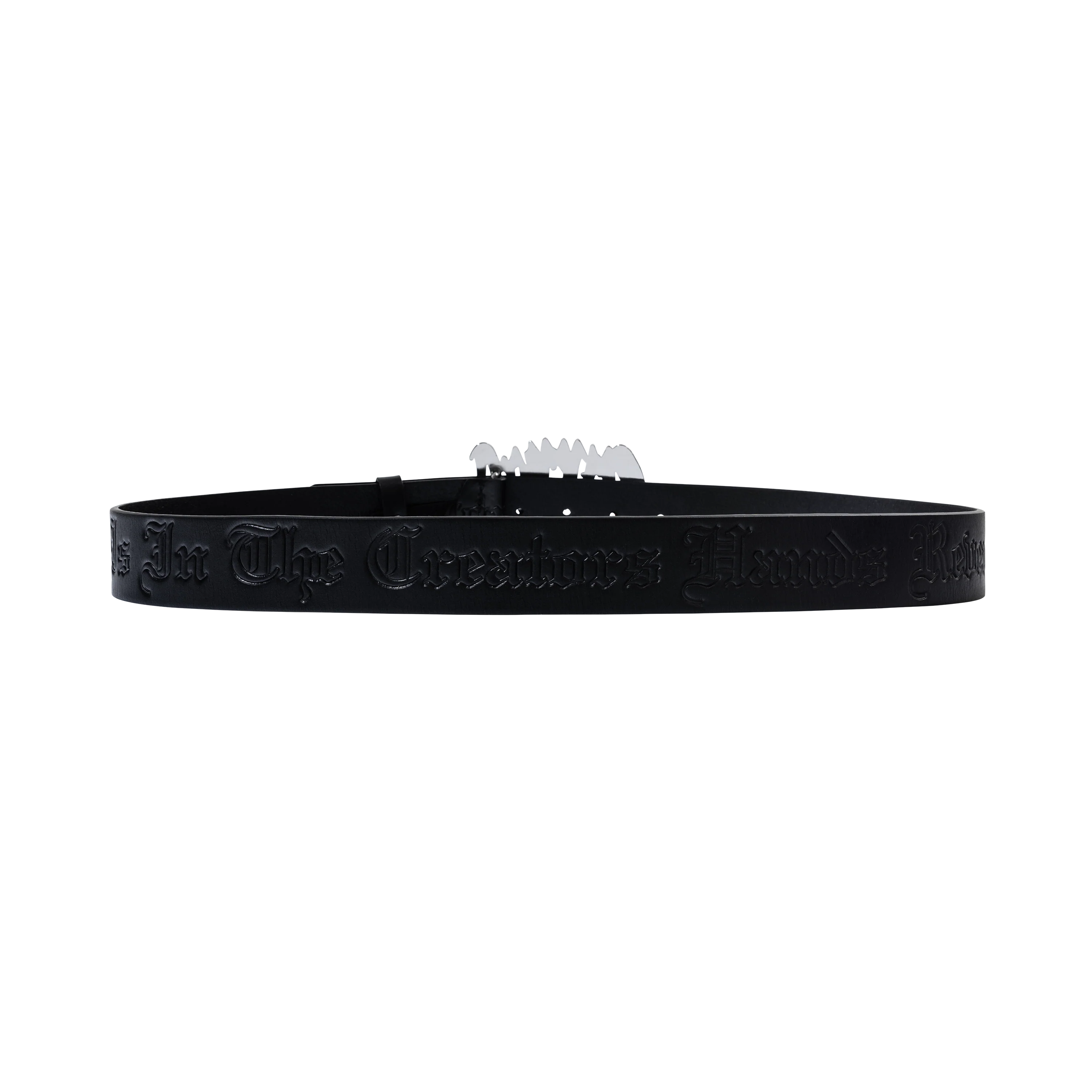 ARCH LOGO DEBOSSED LEATHER BELT BLACK